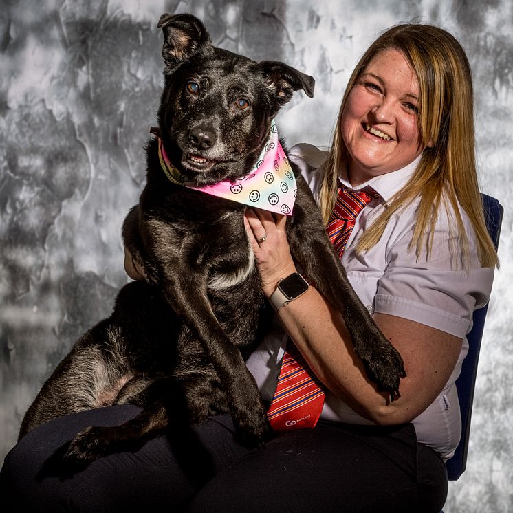 “Misty just wants everyone to love her. She’s not fazed by much either, we always say she’s totally fearless. Saying that she’s the softest dog at heart, we love spending chilled time together. When I’m watching TV of a night, she’ll jump up onto the back of the sofa and wrap her paws over my shoulders and snooze. That’s her favourite spot… and mine too.”