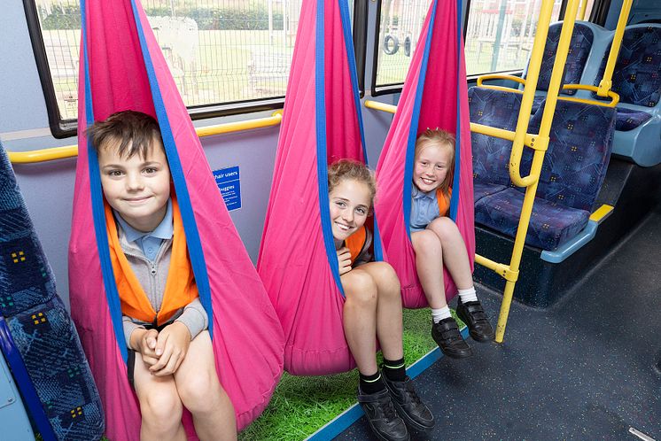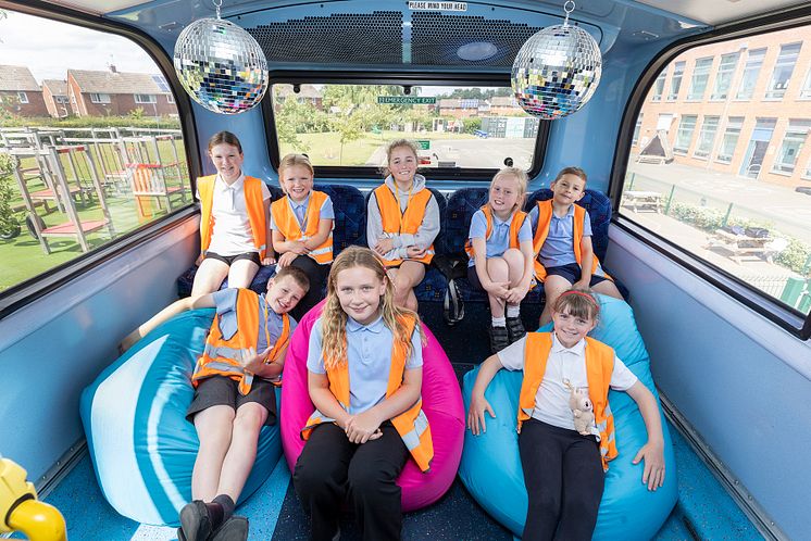 Go North East’s engineers have worked hard to modify the bus based on designs created by the children themselves – who chose everything from the bus colours to the internal layout, which now features hammocks, bean bags, and a board games area.