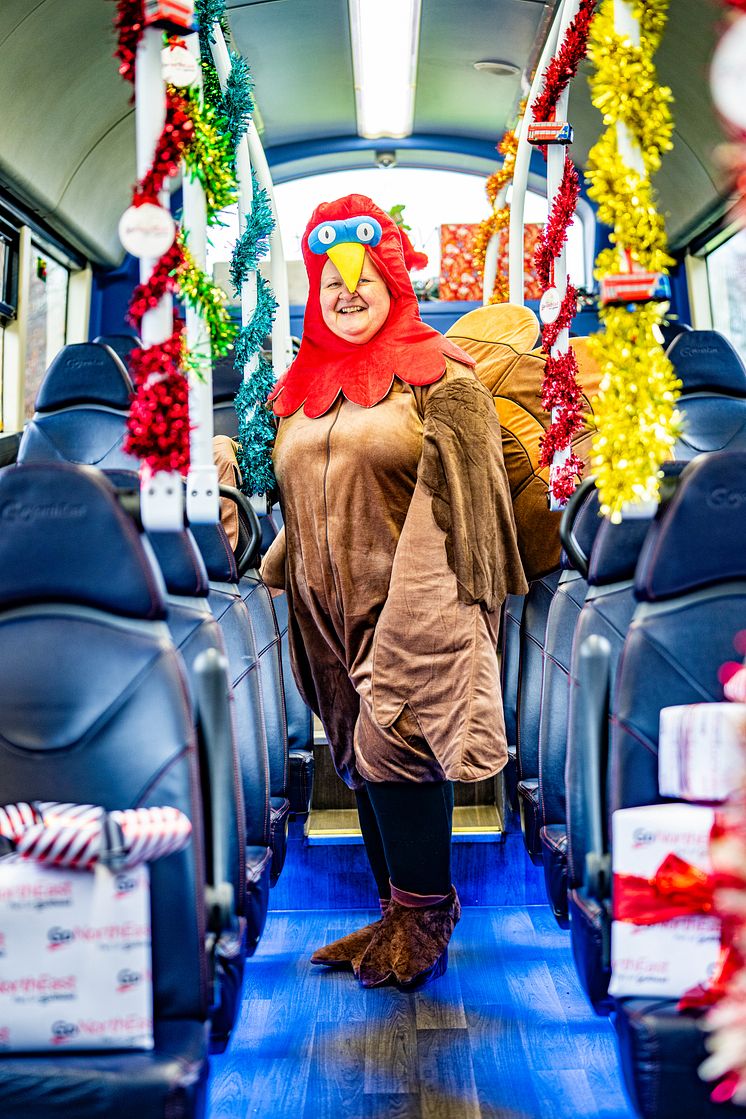 Go North East bus driver Julie Richardson is spreading holiday cheer by wearing a different Christmas-themed outfit every day in December, turning what might otherwise be a tough month into one filled with laughter and joy.